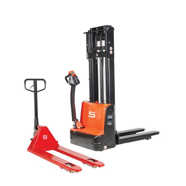 For full product specifications, detailed features, and dimensions, see the 27773 Manual Pallet Truck page and 25071 D3 Pedestrian Stacker. Both products’ spec sheets are also included for easy reference.